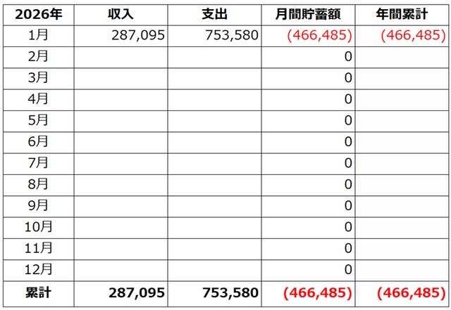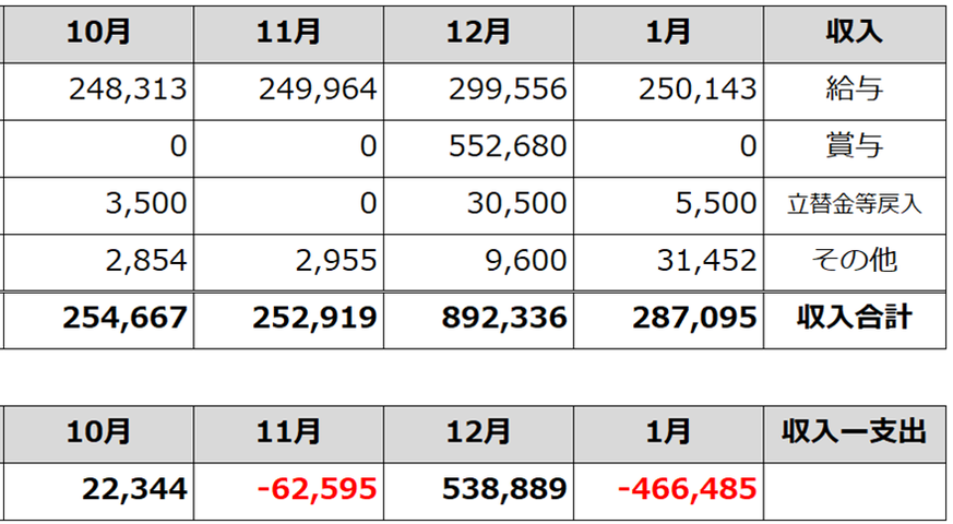 ひとつ前の記事の家計簿上での収支は-466,485円。