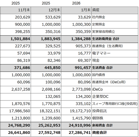 2026年1月末の3資産内訳