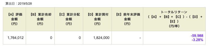 現在の累計買付金額と評価金額