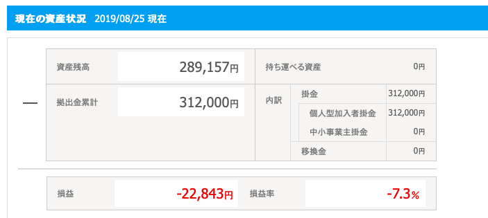 損益 -22,843円 損益率-7.3% になりました。