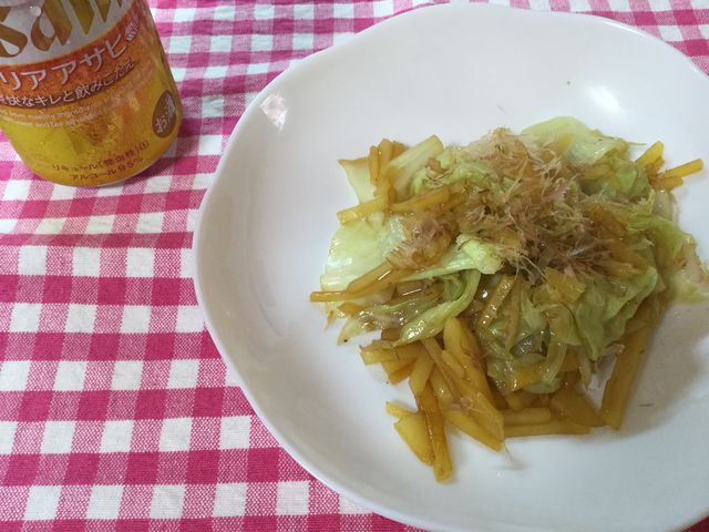 2017年08月24日 不買の日、二日目 今日も一円も使いたくなかった。千切りしたジャガイモと千切りしたキャベツを炒めて、最後に卵を絡めて、皿に盛ってからマヨ・ソース・かつおぶし。白飯なし。発泡酒を飲みながらダラダラと作って食べた。山のようにあるジャガイモが一つカビてた。orz残り6個、土日で食べ切ろう。。