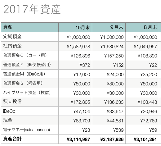 2017年10月末資産公開