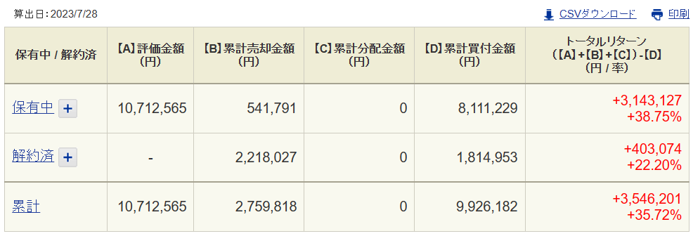 積み立てを停止した他の6本の投資信託は売却せず、現金として必要になる時まで持ち続けていくつもりです。