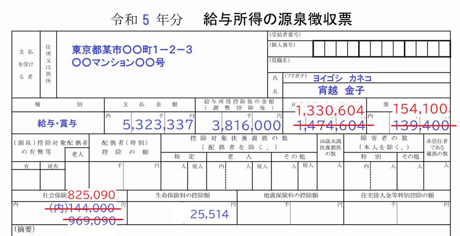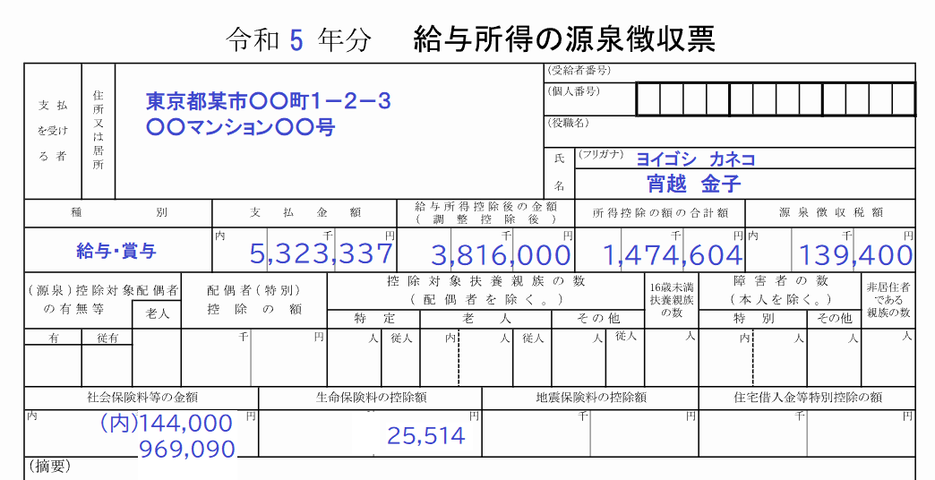 令和5年分の給与所得の源泉徴収票を公開します。