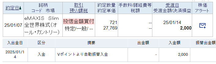 毎月の投信積立でひと月200~250のVポイントが入っているのですが、半年くらい使わないでいたらいつの間にか2,000ポイント以上貯まっていたので、これはチャンスだ!と思って。