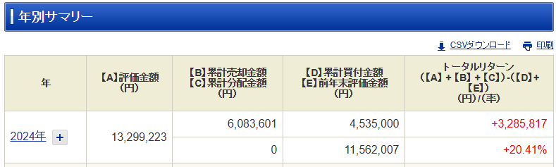 現在の評価金額とトータルリターン