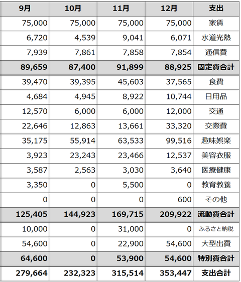 支出合計353,447円。固定費