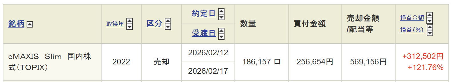 2月半ば頃に毎日「日経平均株価が史上最高値」とニュースになっていたので、国内株式ファンドを売るなら今では?と思い、今年中に売らないといけない2022年購入分旧NISAの一部を売却しました。