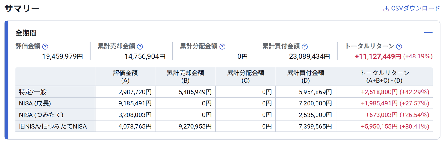 現在の評価金額とトータルリターン