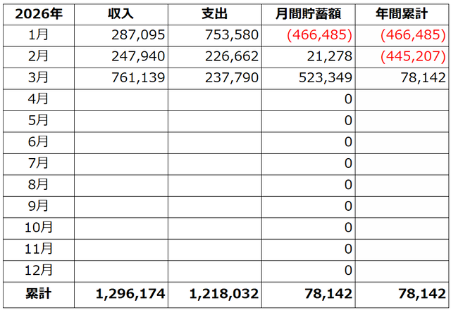 2026年3月 収支