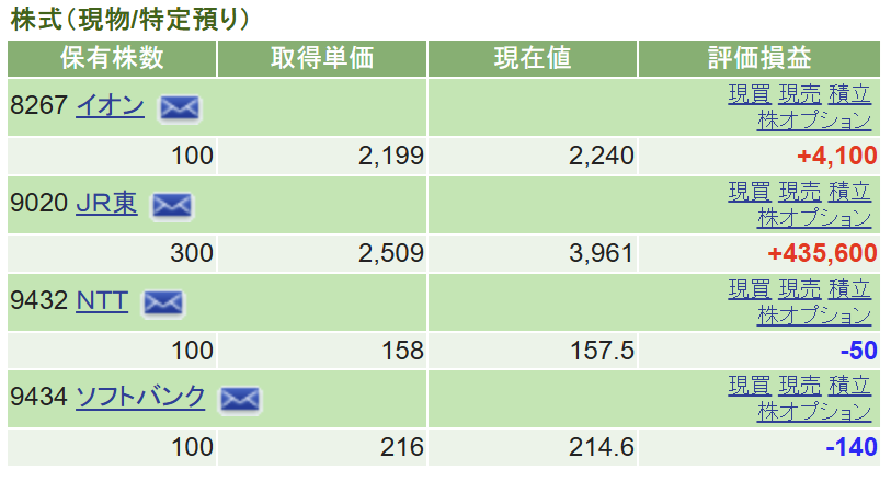 唯一持っている個別株「東日本旅客鉄道」の他は今後一切個別株に手を出しません!!