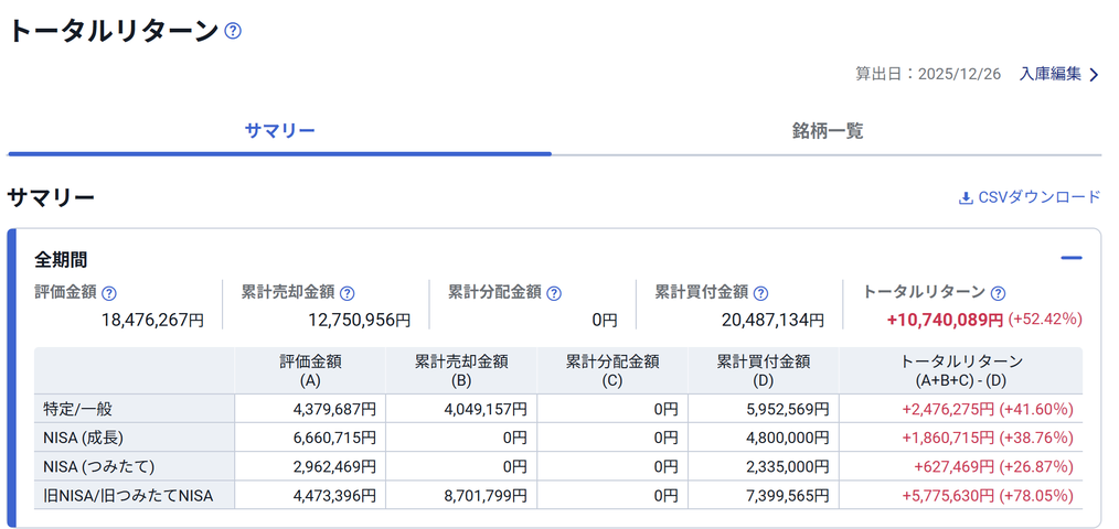 現在の評価金額とトータルリターン
