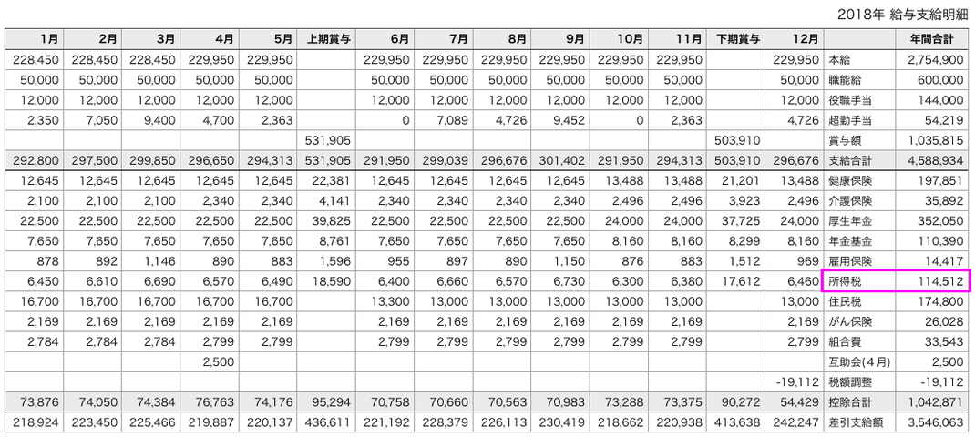 ですが、実際毎月給料から天引きで控除された所得税の年間合計金額は、