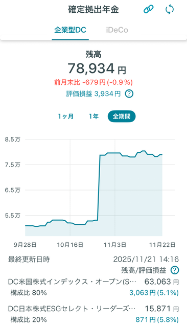 ※上記画像はわたしの企業型DCを取り扱っている「三井住友信託ライフガイド」スマホアプリのスクリーンショットから個人情報部分を消したものです。