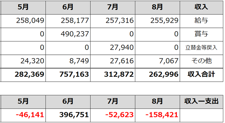 家計簿とは切り離した余裕資金で行っている資産運用の方でお金が順調に増えていっているので、家計簿上では赤字でもそれが必要な出費ならば問題なし!と、お金の使い方に対して精神的に余裕が持てるようになりました。