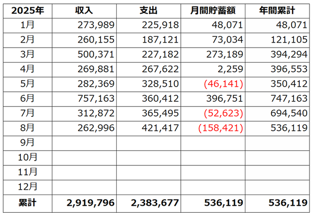 今年も前年同様、年内4回帰省・今しか楽しめないイベント参加・健康第一を優先し、貯金額には目標を定めていません。