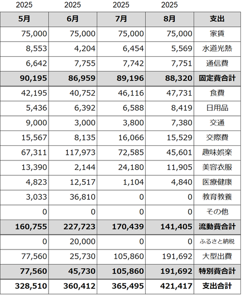家計簿は日々こまめにスマホアプリのZaimに入力しているものを、月末にExcelでまとめています。