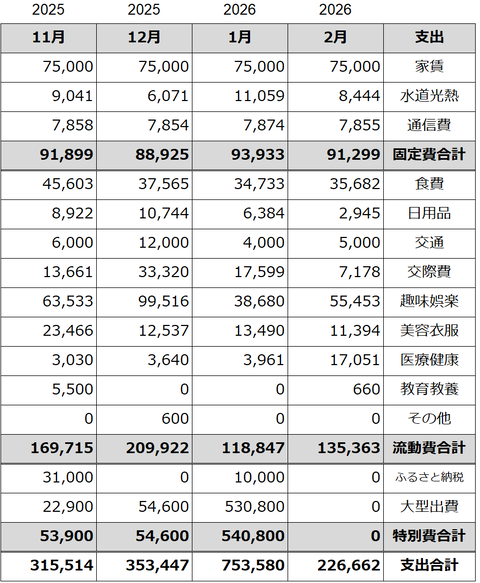 52歳独身 都内賃貸一人暮らしOLの2026年2月の家計簿を公開します。